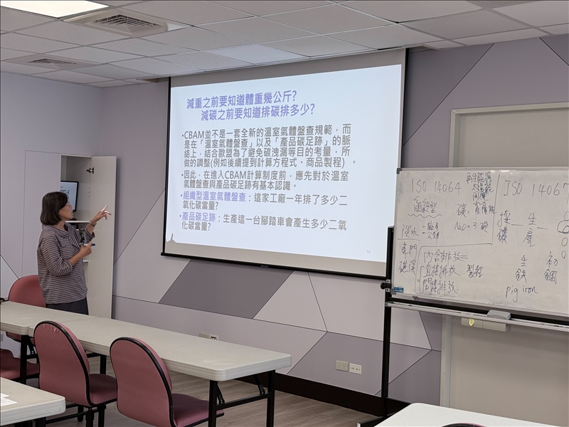 老師補充說明 CBAM 並非新制度,而是溫室氣體盤查與產品碳足跡的延伸整合。