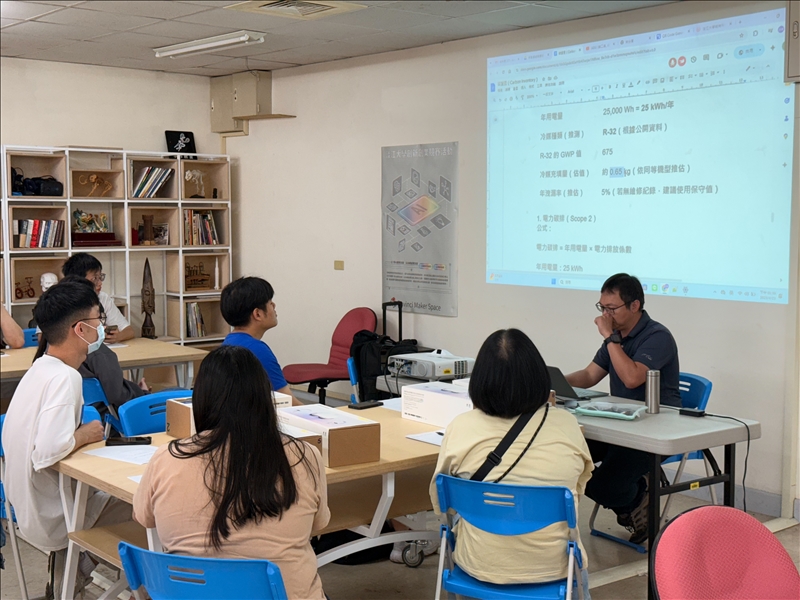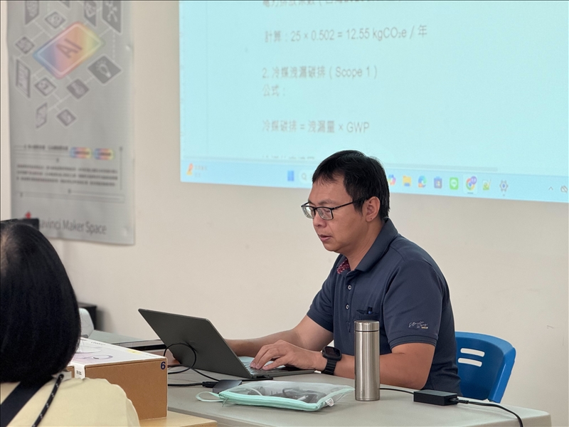講師以簡報實例,帶領學生練習碳盤查數據計算。