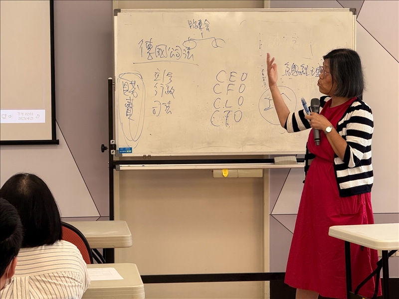 講師深入說明公司治理制度與實務差異,並結合案例引導學生思考。