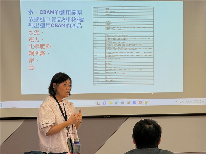 講師講解CBAM適用產業,並解析海關稅則細項。