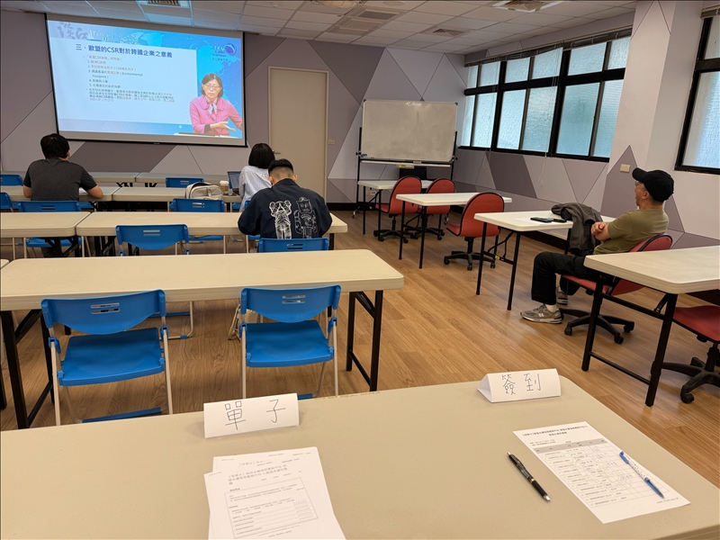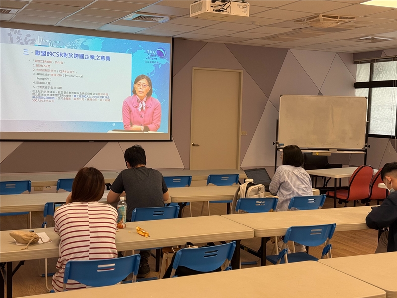 投影畫面介紹歐盟對企業CSR揭露義務與永續供應鏈責任。