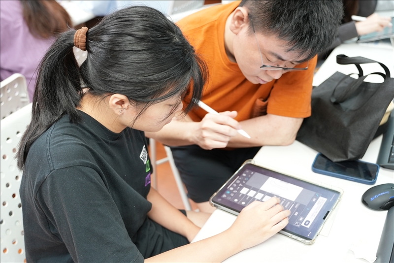學生認真聆聽講解,筆記與操作電腦同步進行。