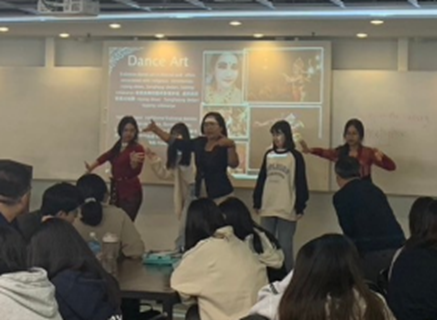 印尼峇里國立教育大學老師帶領教設系學生體驗峇里島傳統舞蹈。