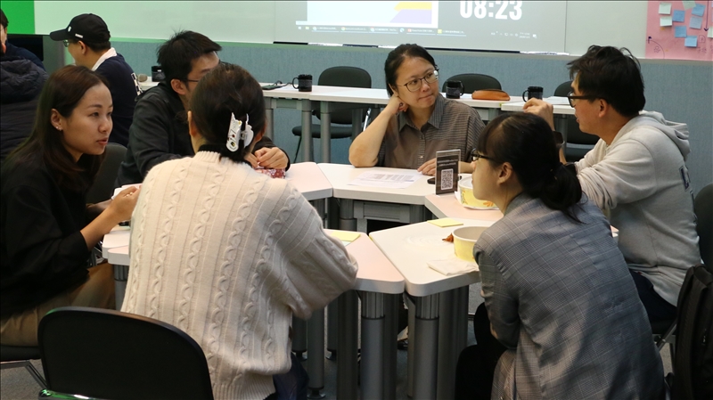 張主任於分桌活動與新聘教師進行討論