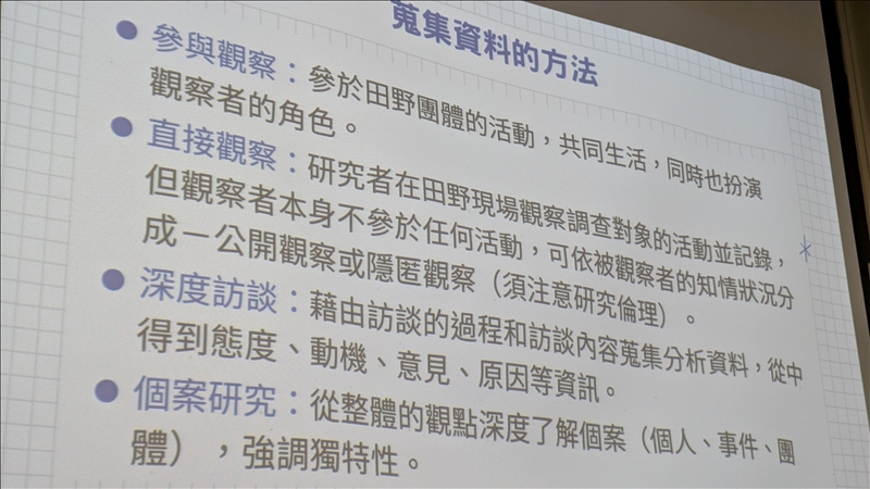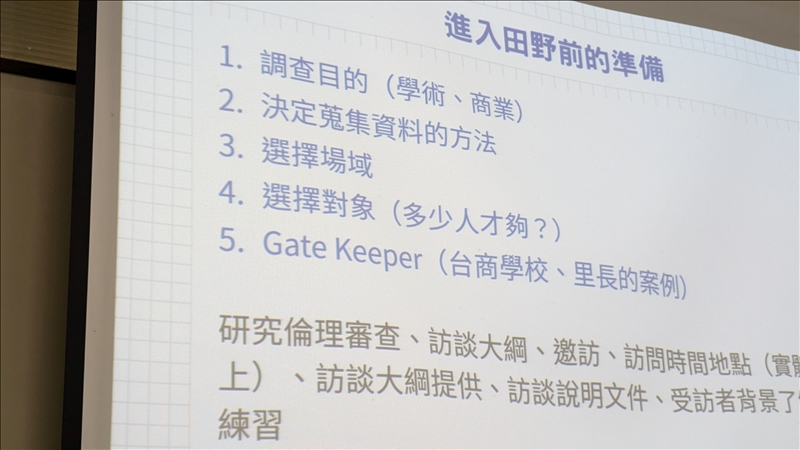 講者說明進入田野前的準備工作