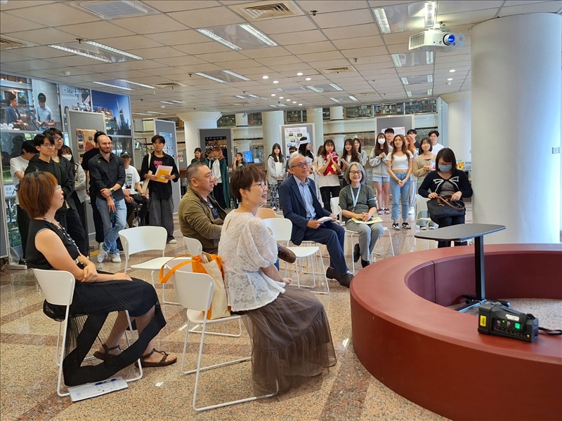 觀光系陳淑娟主任蒞臨開幕致詞,並與其他參與評審與師長參與動態展。