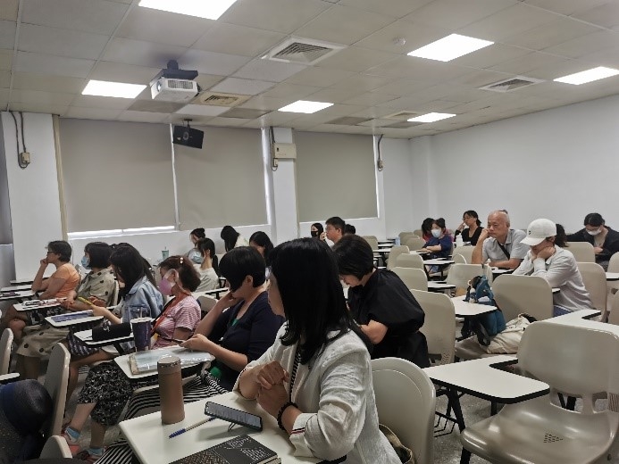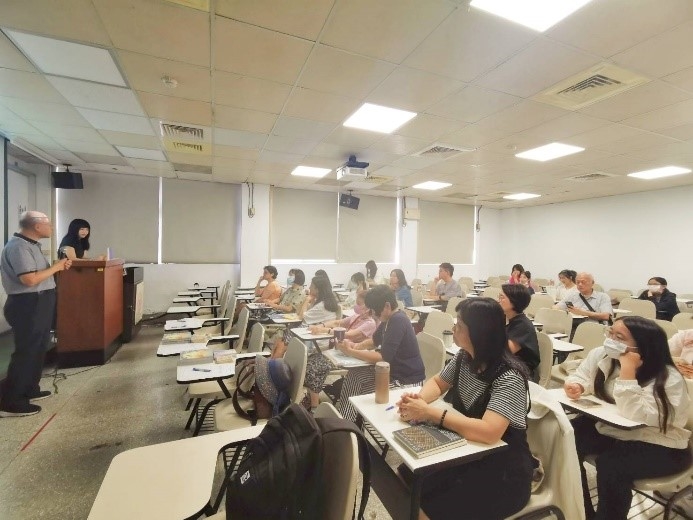 講者講述過去在課堂上如何帶領學生進行檔案轉化