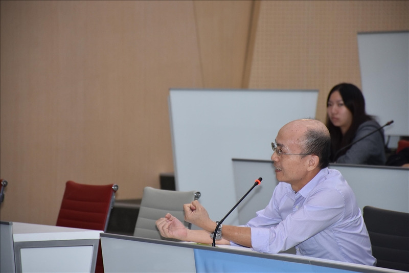 4-參觀淡水校園-宮燈教室,安達千波矢教授與陪同人員合影。(馮文星攝影)