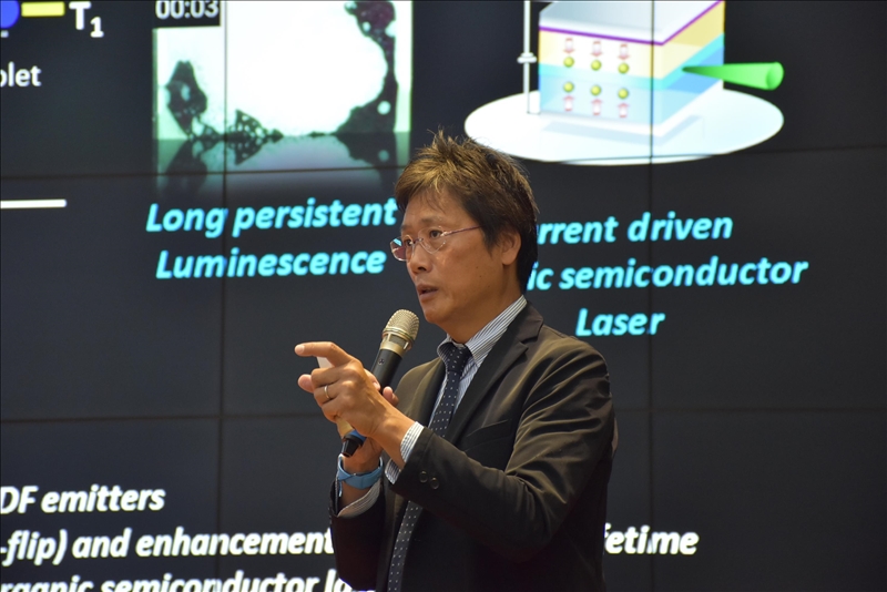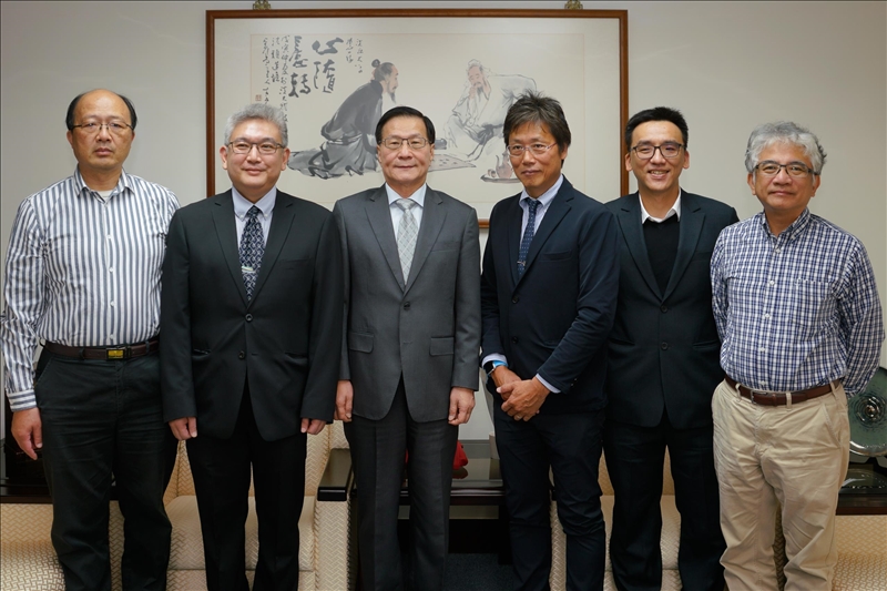 3-安達千波矢教授拜會校長,並與陪同人員合影。(馮文星攝影)