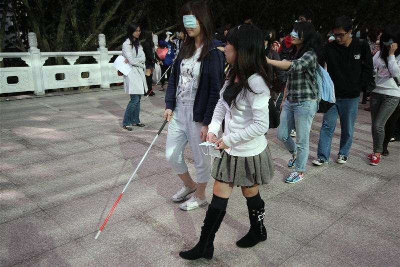 「校園與社區服務學習」課程,一般生與視障生共體「健康校園」。