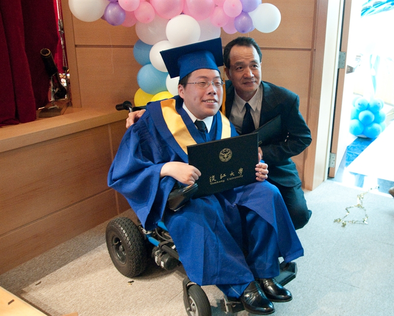 在銅鑼響聲中,蘭陽校園開啓畢業典禮一系列的活動,由校園主任、院長、系主任及師長們引導畢業生進行校園巡禮,登大階梯俯瞰蘭陽平原,遠眺龜山島,穿越宿舍前平台,走下象徵淡江精神的克難坡。兩旁學弟妹一早就守候在此等著送花,獻上祝福與擁抱。校長張家宜博士率副校長暨貴賓在強邦國際會議廳前恭賀畢業生。10時進入典禮會場,典禮主持人周志偉博士以英文開場,張校長、來賓、校友及畢業生代表依序致詞。 今年社區發展學院首屆38名畢業生全數參加畢業典禮,社發院採進學班學制,假日上課模式進行,學生大多是蘭陽在地人。家住羅東的休閒系黎喬泰同學,因罹患基原性肌肉萎縮症,肢體無法自主活動,4年來都由媽媽接送上下學。樂觀開朗的他,從不怨天尤人,學習力旺盛,在校表現優異,學業成績名列前茅,和同學互動良好。剛毅不撓的學習態度足為同學楷模,張校長特予精神勉勵,將步下講台,為他頒發畢業證書,並向黎媽媽致上敬意。淡江大學創辦人張建邦博士以私人興學回饋鄉里的美意,在此得到完美的註腳。 送往迎來,美景依然,今年畢業典禮的主題是「天上人間何處去,大鑼神仙下凡來」。在銅鑼聲響撼動下,畢業同學不捨蘭陽校園如詩如畫的美麗景緻,揮別如膠似漆的同窗情誼,勇敢地走入凡間。相信在蘭陽優質的學習環境中孕育出的淡江人,個個都是創意十足的社會新鮮人。 有別於傳統的畢業奬項,蘭陽校園獨特的「青出於蘭」獎,其中「青出於蘭-傑出獎」由網路票選產生,共有4名得奬人:旅遊與旅館管理學系吳哲翰同學、資訊創新與科技學系黃嘉民同學、服務業經營學系邱琍敏同學、景觀建築與管理學系林朝木同學。其他還有「青出於蘭-學分獎」、「青出於蘭-創新獎」、「青出於蘭-才藝獎」、「青出於蘭-國際獎」、「青出於蘭-開卷獎」、「青出於蘭-勤學獎」、「青出於蘭-成長獎」等奬項,因事前保密到家,無人知道評審結果。會場帶著濃濃的奧斯卡奬頒奬典禮氣息,被提名者屏息以待。當典禮主持人拖著長長的尾音報出the winner is…,接著全場既緊張又刺激地尖叫、恭賀聲不斷,得奬的同學上台用英文發表得奬感言。最後由校長張家宜博士親自為每一位畢業生頒授畢業證書並合影留念。在高唱校歌及蘭陽之歌“I have a dream”中,畢業生將帶著師長的祝福,完美結束一個溫馨又難忘的畢業典禮。