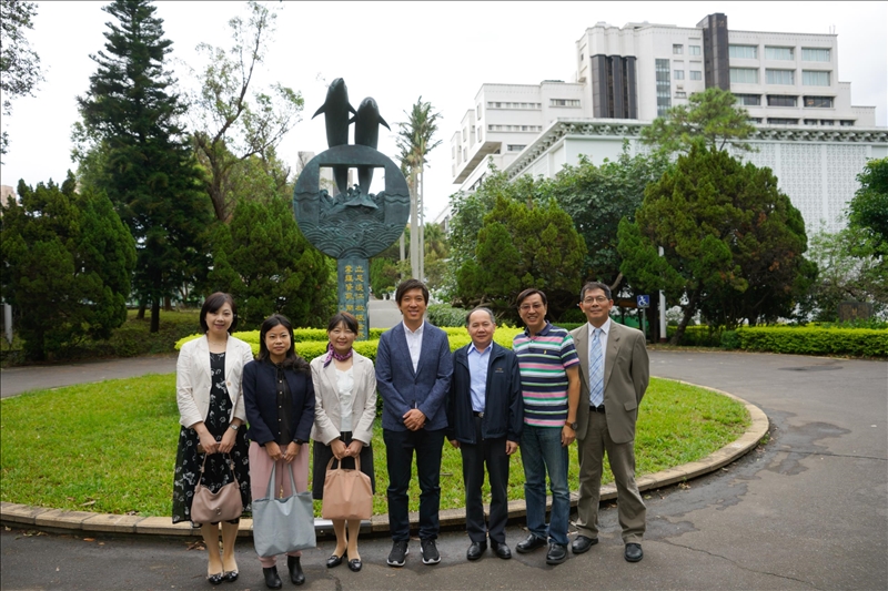 6-文學院林呈蓉院長(左3)及5位系主任陪同Mr. Dan Lin(中)參觀校園-2(馮文星攝影) (2560 px × 1708 px、3.22 MB )