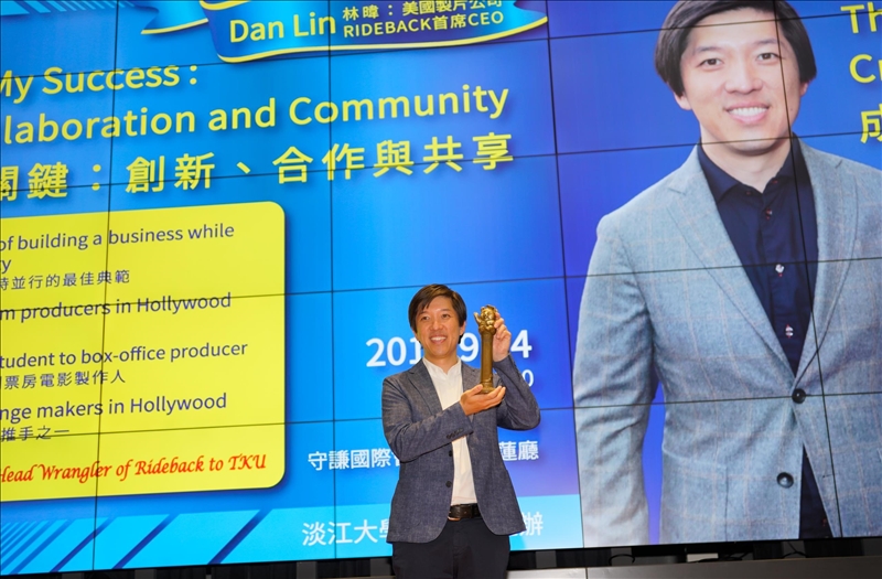 10-本校第12場「熊貓講座」邀請美國知名製片公司RIDEBACK首席CEO-Dan Lin(林暐)於108年9月24日下午1時10分在淡水校園守謙國際會議中心有蓮廳舉行。(文學院提供) (6000 px × 4000 px、1.72 MB )
