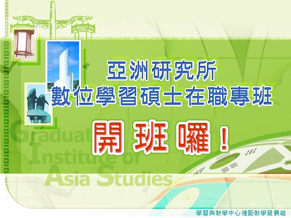 數位資源分享國際之「亞洲研究所數位學習碩專班」已獲教育部核定,預計9月開課。 (596 px × 447 px、780.56 KB )