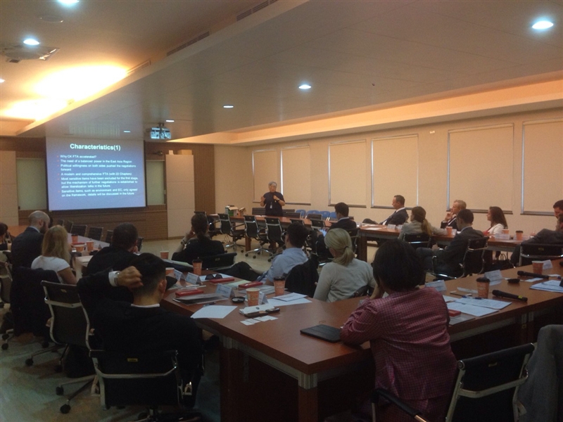 2015年歐盟週系列活動在5月7日「東亞政治暨安全論壇」揭開序幕,此次論壇由歐洲聯盟研究中心與歐洲研究所主辦,由國際事務副校長戴萬欽、國際研究學院王高成、歐洲研究所所長暨歐洲研究中心主任陳麗娟、國際事務暨戰略研究所副教授李大中與全國工業總會資深顧問徐純芳出席,以及17位來自歐盟各國(德國、波蘭、捷克、斯洛伐克、西班牙、奧地利、荷蘭、愛沙尼亞、義大利、斯洛維尼亞、立陶宛、克羅埃西亞、拉脫維亞、比利時、保加利亞及芬蘭)等外交官員,針對東亞安全現況進行意見交流。 陳麗娟表示:東亞區域經濟發展與整合已經有一個嶄新的面貌,為使歐盟會員國政府對於東亞地區的外交經貿發展與中華民國的亞太政策有進一步的瞭解,即為本次會議之主要背景。透過國內專家學者與歐盟會員國代表的雙邊交流與對話,以期瞭解歐盟會員國政府對於東亞地區政治與安全發展之想法,另一方面由與會學者向他們分析東亞政治經貿發展現況,並說明與宣揚中華民國當前主要的外交與經貿政策。 此次論壇由戴萬欽擔任主持人,首先由徐純芳發表『中國與南韓自由貿易協定對我國的衝擊』進行真知卓見的報告,接著由李大中針對『亞投行與一帶一路對於東亞安全現況的影響』進行精闢的分析。在兩篇精采的報告後,首先由德國籍的外交官員首先提問,進行意見交流,接著陸續有義大利籍、比利時籍、荷蘭籍與捷克籍外交官員發表不同的看法,戴萬欽、王高成、陳麗娟也針對提問回應,最後由此團捷克籍團長Jukl代表全體成員向本校致上最高謝意,讓他們有機會可以與國內的學者交換意見。 與會的歐盟各國外交官員對於本校充滿生氣、鳥語花香的校園留下深刻的印象,同時對於本校國際研究學院就國際事務擁有美國、亞洲、俄羅斯與歐洲等區域研究有全方位的專家學者深表難得,尤其是本校對於區域研究的支持更是致以崇高的敬意。有數位外交官員並表示希望不久的外來可以再度造訪淡江大學。配合歐盟週的開幕,在外交部的贊助下,歐洲聯盟研究中心進行了一次成功的學術國民外交。