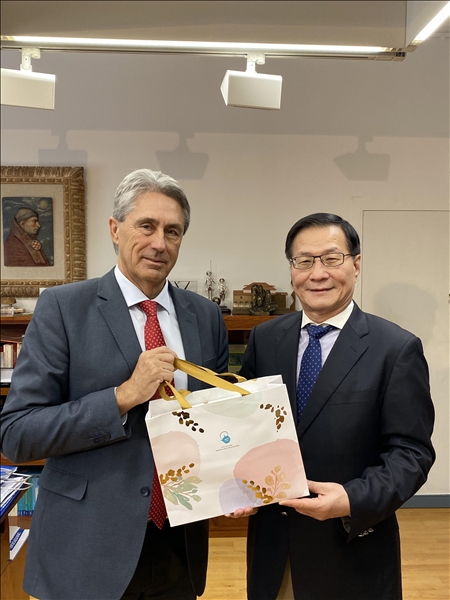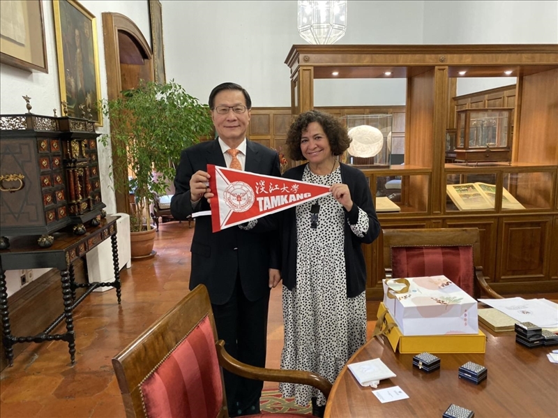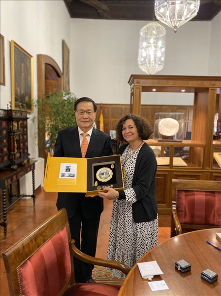 23-西班牙姊妹校卡斯蒂亞-拉曼恰大學Miguel Ángel Collado Yurrita校長致贈紀念品給本校張家宜董事長 (4032 px × 3024 px、3.33 MB )