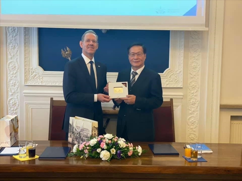 35-本校葛煥昭校長致贈交流旗幟給波蘭姊妹校華沙大學校長 (960 px × 720 px、50.75 KB )