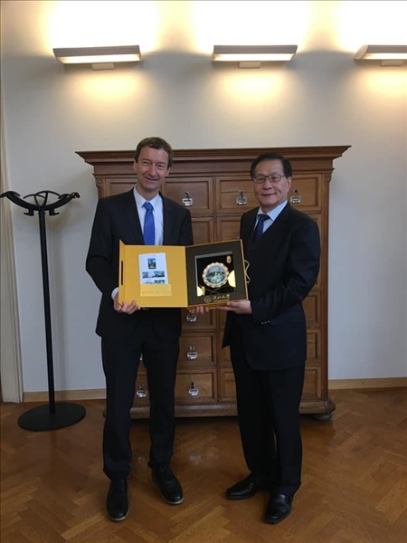 43-本校葛煥昭校長致贈紀念品給比利時姊妹校聖路易斯布魯塞爾大學校長Rector Jadoul (960 px × 720 px、36.78 KB )