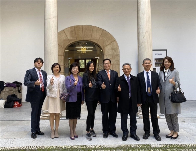 2-108年11月11日本校訪問團至我國駐西班牙代表處拜訪,右起:吳萬寶院長、王高成國際副校長、葛煥昭校長、劉德立大使、張家宜董事長、陳小雀國際長、張翔筌特助、朱心瑩組員。 (1478 px × 1108 px、294.66 KB )