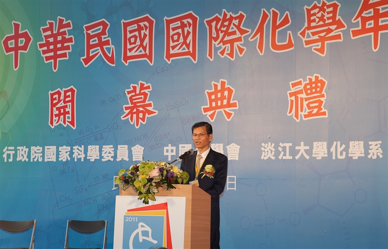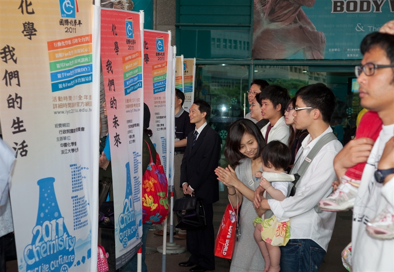 「2011國際化學年」系列活動係依聯合國大會決議,由國際純粹暨應用化學聯合會(IUPAC)及聯合國科教文組織(UNSCO)共同執行,約有超過40個國家及組織參與的活動。為響應這別具意義的活動,台灣的主辦單位中國化學會、國科會及淡江大學特別於5月7日(六)下午在台北市士林區國立台灣科學教育館1樓戶外館場舉行「2011國際化學年」系列活動開幕式,中研院院長翁啟惠及國內重要科學界人士如李遠哲院士等,都應邀參加儀式,上千民眾亦共同見證這歷史紀錄。整個開幕活動包括年輕化學親善大使帶領民眾製作洗手乳、洗面乳、面膜,朱梗的化學魔術秀,各縣市代表上台點燈等熱鬧有趣的節目,就是要全民一起輕鬆Fun化學。 「2011國際化學年」系列活動是以「化學-我們的生活、我們的未來」為宗旨,巡迴全國各國、高中進行化學科學普及教育宣導,根據活動宗旨,淡江大學團隊設計了「化學下鄉」活動,並打造一部行動化學館,搭載包括親手fun化學、親眼fun化學、親耳fun化學及親水fun化學等四部分活動所需之軟硬體,到偏遠地區教育資源較不普及的中小學,從事化學教育之宣導工作。整個化學下鄉工作,淡江大學團隊已於3月中展開,目前已訪問數十所學校,包括聖心女中、徐匯中學及較偏遠之寶來國中、潮寮國中等,普遍獲得每間訪問之學校相對好評,未來也將持續安排離島之金門高中、金湖國中及蘭嶼國中,讓偏鄉及離島的學子們,都能透過有趣而又生動的宣導活動,親近化學、喜歡化學。 鑑於日常生活中一切事務無一不與化學相關,為提升大眾對化學的了解與興趣,因此開幕活動安排YAC年輕化學親善大使帶領民眾製作日常生活化學用品,教導一般民眾正確的化學觀念,以走入群眾,讓社會大眾都能有機會接觸化學的最佳捷徑,扭轉一般民眾普遍「化學既有害又危險」的刻板印象。此外,因為化學下鄉工作正如火如荼展開,因此在開幕式中,亦邀請30餘位各縣市學校代表,共同在台灣地圖上點燈,象徵著「化學下鄉、生生不息」。同時,儀式中也播放一部名為「台灣好水」的影片,喚起大家共同珍惜台灣珍貴的水資源。