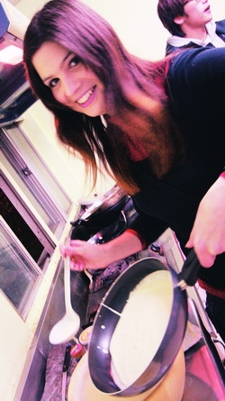 法籍助理Fanny Scarulli示範煎餅
